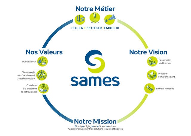 Sames conçoit, produit et commercialise des solutions complètes : pistolets manuels, pulvérisateurs automatiques et robotisés, distributeurs, pompes et doseurs… Sames propose des solutions à la pointe de l’innovation technologique, au service de l’efficacité industrielle des clients les plus exigeants, et respectueuses de l’environnement.
